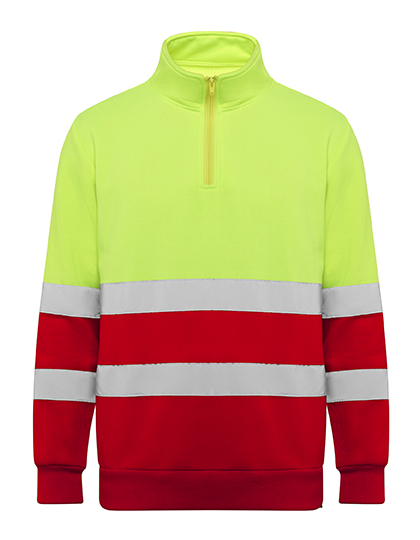 Hi-Viz Sweatshirt-Warnschutzpullover mit halbem Reißverschluss, hohem Kragen, Kinnschutz und Puller